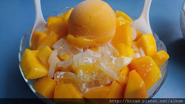 上頭有芒果冰淇淋、椰果、芒果、煉乳