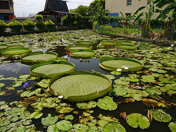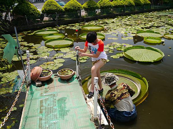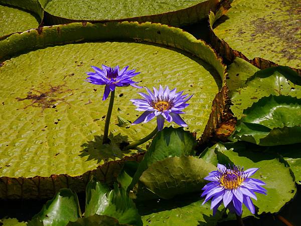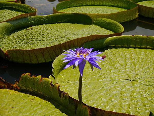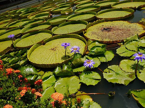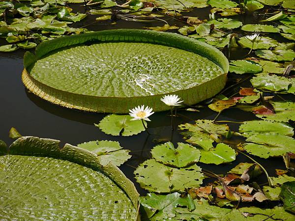 上圖的大圓葉則是大王蓮,原產於亞馬遜河流域(巴西),最大的葉子直徑2.8公尺,入夜開花,日間閉合,葉大如小船,可乘坐小孩。