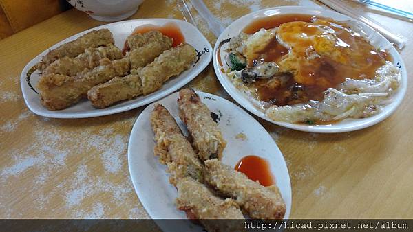 當然不能錯過經營五十幾年陳家蚵捲,安平地區的蚵仔煎所使用的蚵仔,幾乎被陳家一手包辦,蚵捲店面不遠處的棚下,就有著不少人手努力的剝蚵中,可見一座座的蚵山。