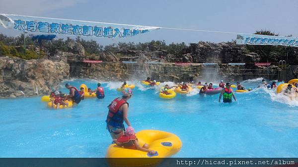 全省第二大人工造浪池僅次於台中月眉大海嘯,且其規模更勝於高雄布魯樂谷,有7種不 同浪花可讓人盡情享受衝浪的刺激,造浪池內隨處可見單人及8字的橡皮圈衝來衝去,更可仰躺在造浪池中享受碧海藍天的美麗景致。