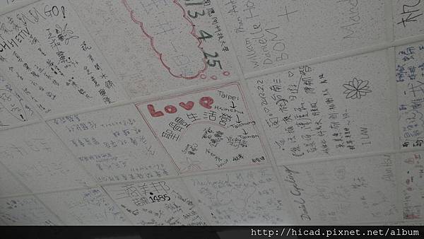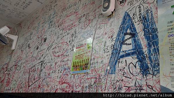 牆上密密麻麻寫滿公司行號、明星、學生、遊客的簽名.......