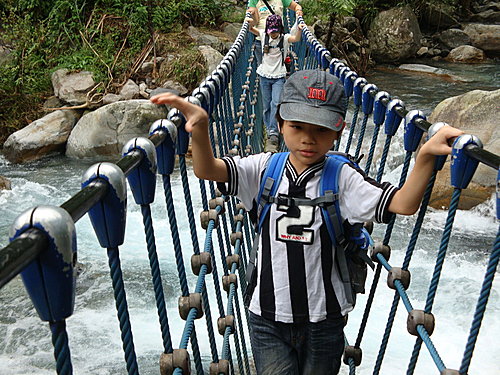 到達步道終點,休息片刻,吸收大自然的芬多精,望著湍急的松羅溪主流,聽著潺潺流水聲,令人瞬間神清氣爽。