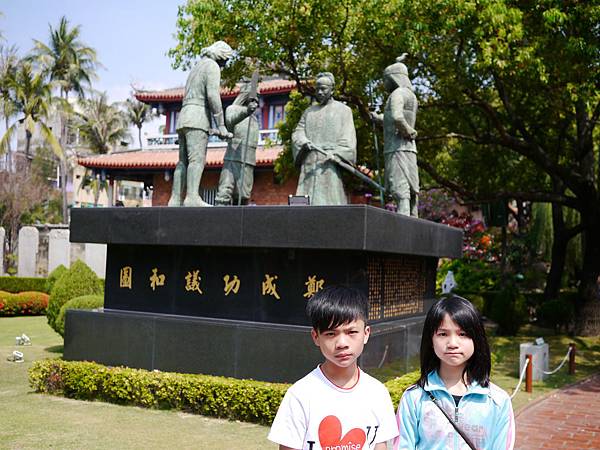清乾隆皇帝為了表彰福康安平定林爽文事件,特賜十塊以金門「麻糬石」雕刻而成的龜趺御碑。每塊碑高3.1公尺,寬1.4公尺,其中四座全刻滿文,四座全刻漢文,二座漢滿文合刻。龜趺御碑運抵台南府時,其中一龜座不慎掉入港內,就另以砂岩仿造一座,原座直到1911年才被台南漁民撈起,供奉在保安宮內。碑座中的九座在赤崁樓中保存,另漢滿文合刻的一座則立於嘉義,這碑座經數次遷移,最後安置於現址嘉義公園為福康安紀功碑。