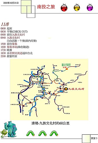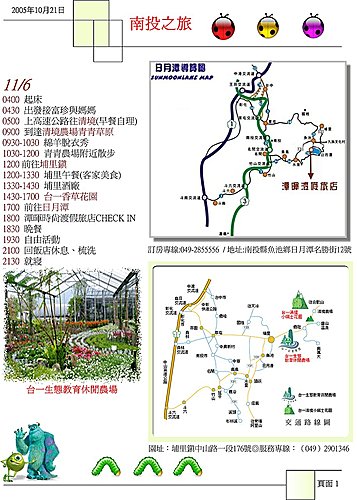 就先把上次南投之旅的行程貼上來吧!事前計劃周詳有許多好處!不會像無頭蒼蠅一樣無目的亂走!尤其路線規劃好,不會迷路或走錯路浪費時間!充分運用假期的每一分鐘!
