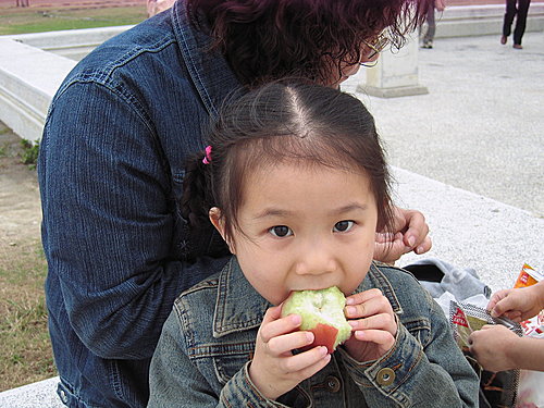 堯堯的臉也圓了,一路上一直吃!呵呵呵!